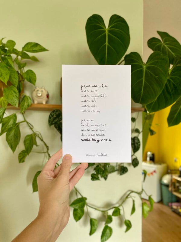 Kaart op A5 formaat met de tekst: